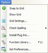 Menu Functions The Options Menu This section contains descriptions of the commands found in VisualNEO Win's Options menu. For more information, select a command from the picture below: