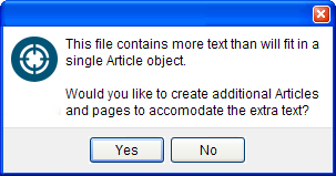 Since the text file we selected is too large to fit in a single Linked-Article, VisualNEO Win will display the message box below: