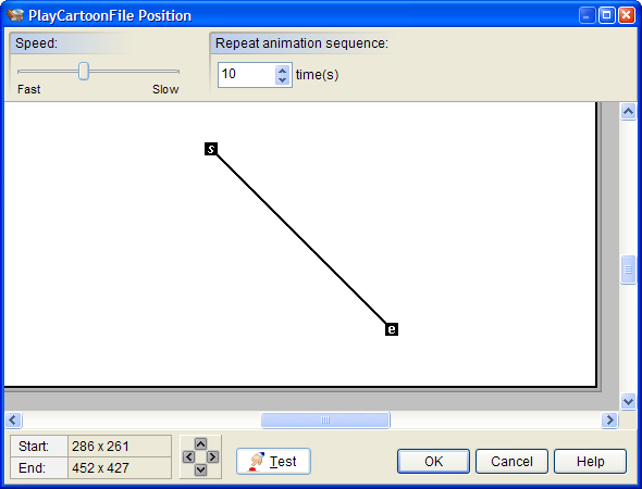 Note: If you want to have the cartoon image remain stationary, enter identical starting and ending coordinates.