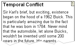 The Linked-Article Tool is similar to the standard Article Tool, except that it allows text from large documents to be distributed automatically across multiple pages. All Linked Articles that reference the same text file are considered linked together in a chain. The chain starts with the Linked Article nearest the beginning of the publication and proceeds through the publication to the last Linked Article. In design mode, Linked Articles display a number indicating their position in the chain. For example: