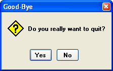 Exit "title" "message" title The dialog box title. message The dialog box message. Line breaks can be entered using the pipe character “|”. Leave the title and message fields blank to exit immediately without requesting confirmation. |