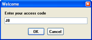 InputBox "Welcome" "Enter your access code" "[Code]"