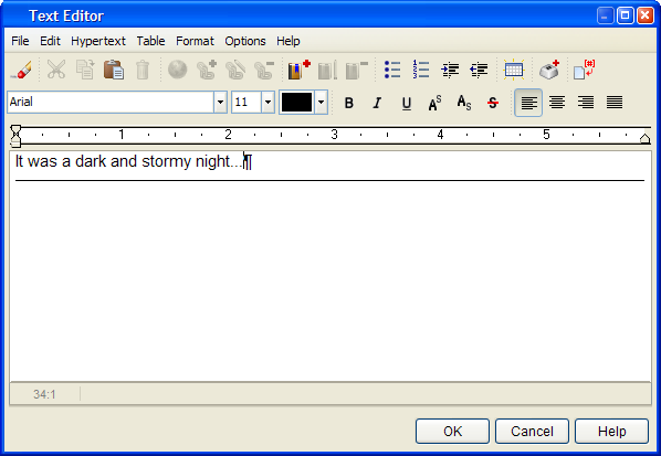 The large space in the middle of the screen is the editor where you will enter and format your text. The editor functions very much like a miniature word processor – just type the desired text into the editor window.