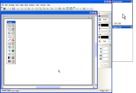 The MouseCam palette shows a magnified view of the area of the screen beneath the mouse pointer. This can be handy when positioning very small objects. You can adjust the magnification settings by right clicking on the MouseCam window.