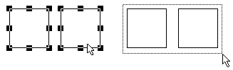 Use the Tool Palette’s Selection Tool to select, move and resize an object. Click on an object using the left mouse button to select it. Select multiple objects by holding down the Shift key while clicking on additional objects, or by clicking and dragging the mouse to surround the desired objects in a rectangle. Selected objects will be surrounded with small, box-like handles.